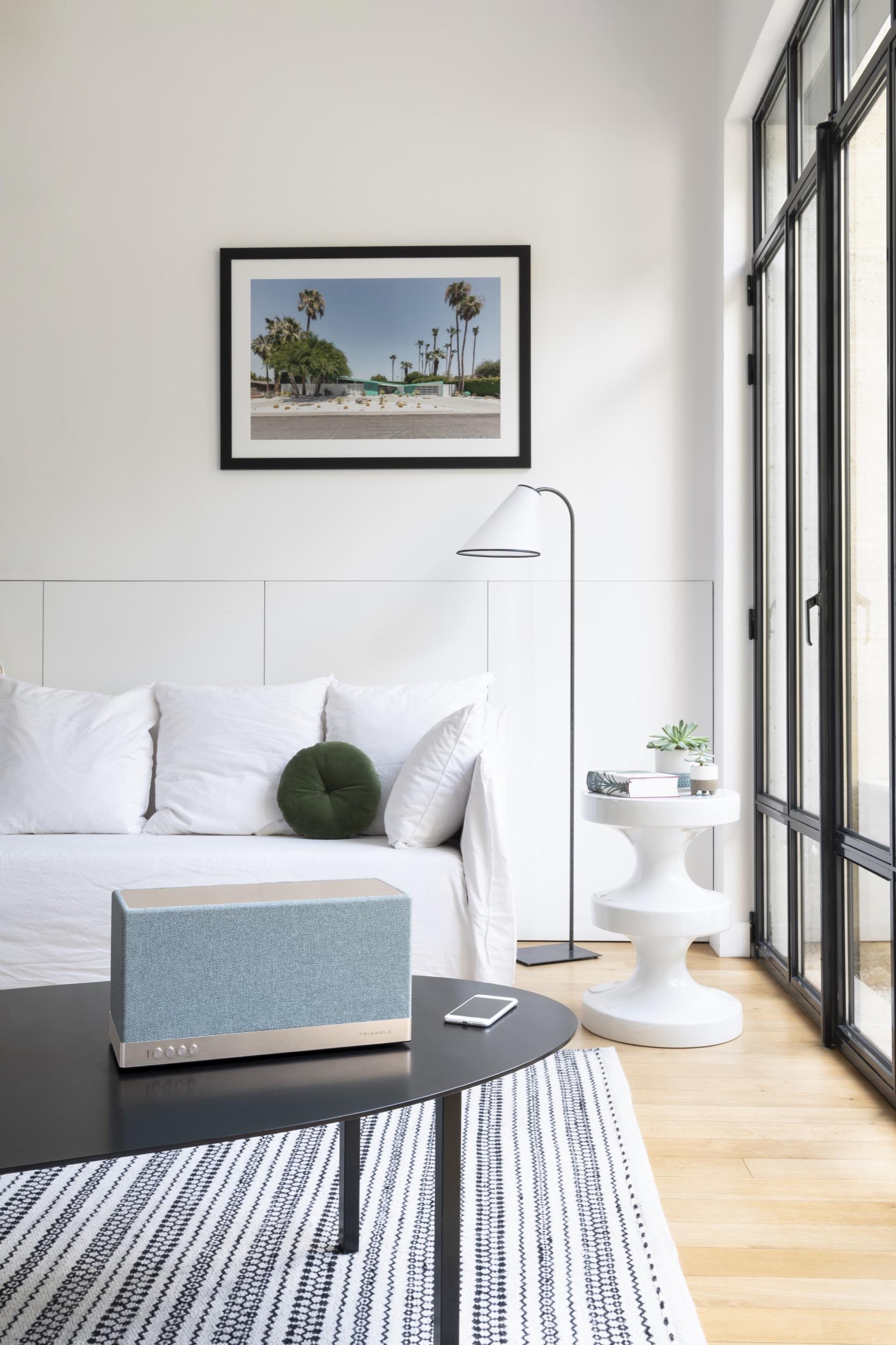W twojej kuchni, salonie, czy sypialni - AIO wpasuje się do każdego wnętrza - dzięki czystym liniom i wykończeniu wysokiej klasy w ekskluzywnej tkaninie skandynawskiej marki Gabriel dostępnej w czterech wersjach kolorystycznych. Teraz Twoja ulubiona muzyka może żyć i pulsować w każdym pomieszczeniu, w którym zagości AIO.