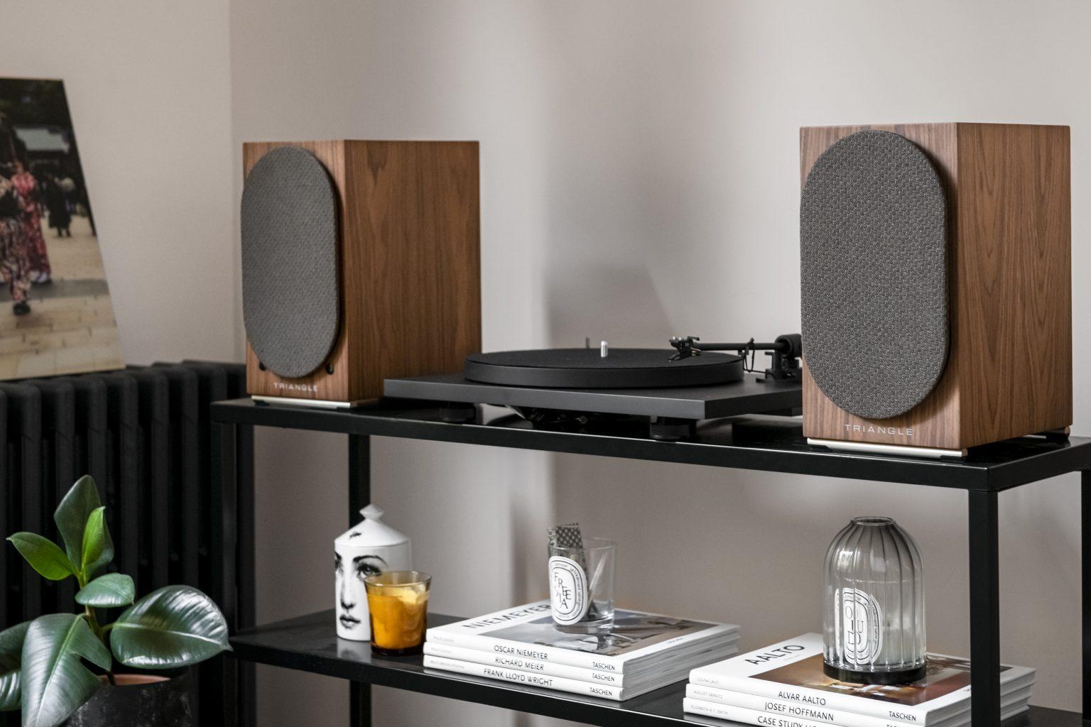 Dzięki AIO TWIN tonalność, szczegóły i wyjątkowe wrażenia podczas słuchania płyty winylowej nabierają innego wymiaru. Dzięki zintegrowanemu przedwzmacniaczowi gramofonowemu MM podłącz gramofon bezpośrednio do głośników i płynnie słuchaj swoich płyt 33 i 45 obr./min. We współpracy ze słynnym austriackim producentem Pro-Ject, Triangle opracował również gramofon zaprojektowany wyłącznie jako uzupełnienie głośników AIO TWIN. Z blatem MDF, aluminiowym ramieniem i wkładką Ortofon OM-10E, ten gramofon oferuje kompletny, wymagający i wysokiej jakości system Hi-Fi.